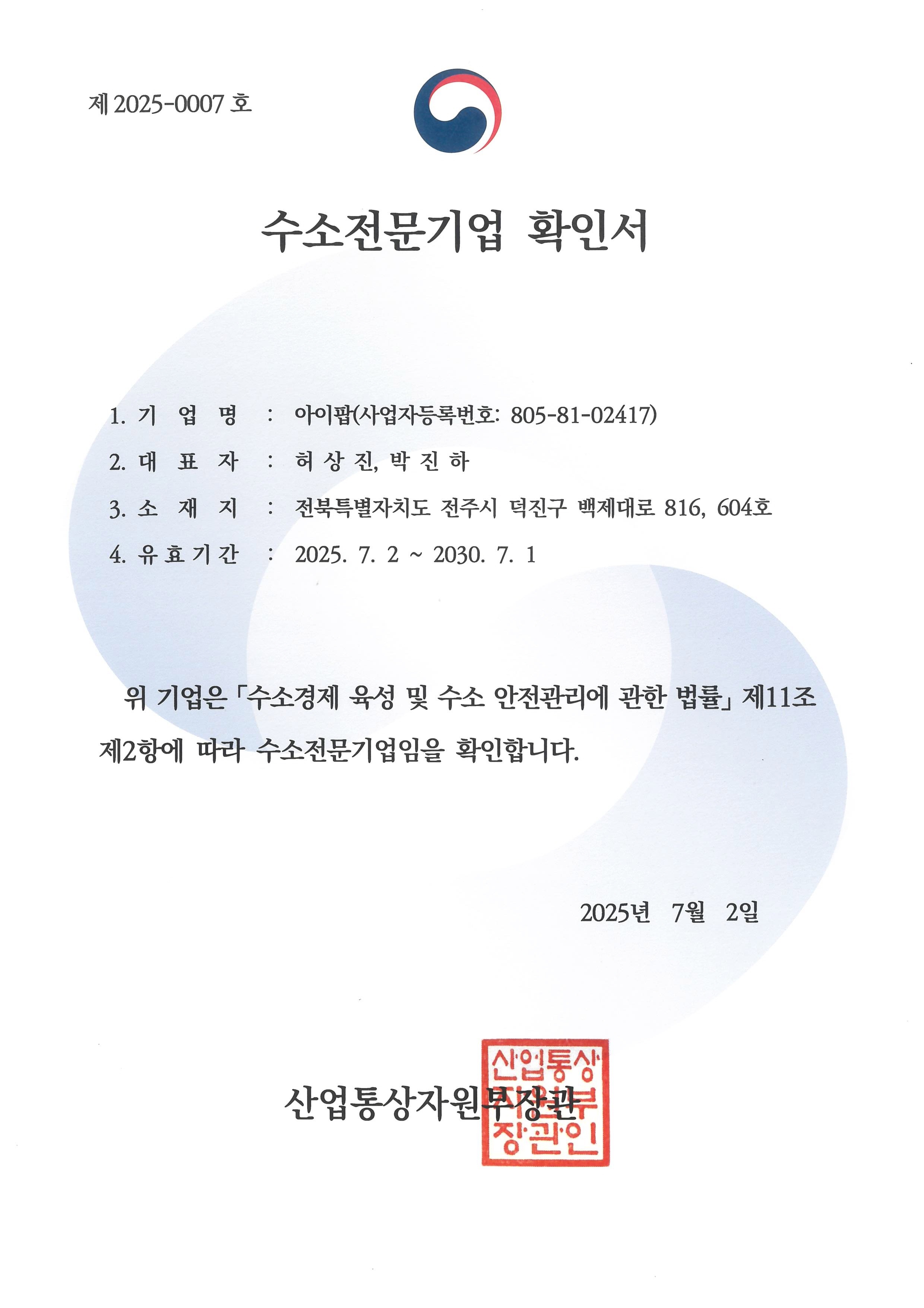 [가스신문] 수소전문기업 7월 3개 추가 총 117개사 - 코하이젠·아이팝·비티이 선정